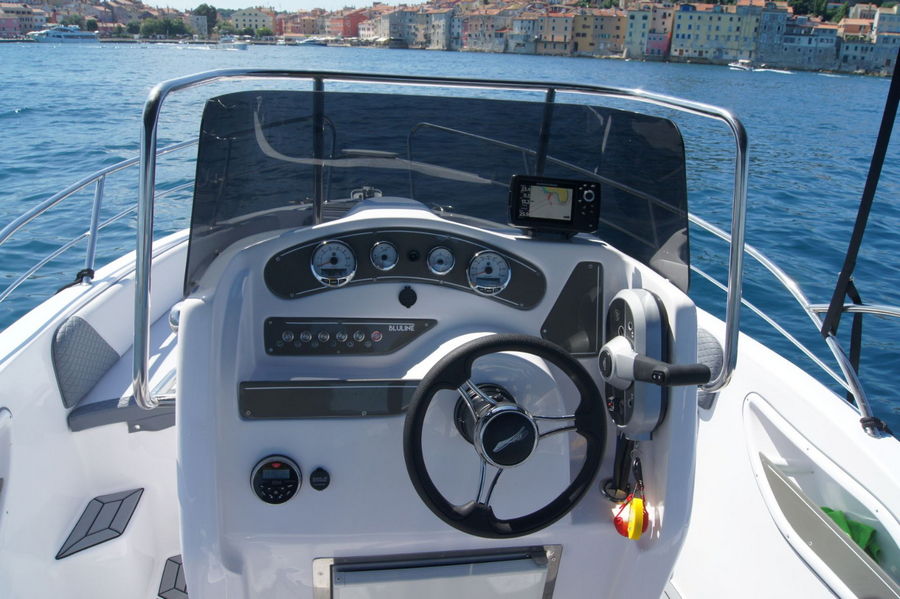 Rent a speedboat Marvel 600, max 6 persons, length: 5.8 meters, engine: Yamaha 100 hp, max speed: 55 km/h. Rent for 1 day or up to 7 days on the beach Žal in Prižba and in the village Karbuni. The open construction of the center console provides ample space for up to six people to move about freely. Large lounging areas on deck and various seating options provide a relaxing atmosphere. Seating and lounging area combined with the railing allow optimal safety, and your valuables and swimming equipment can be stowed in the various compartments.