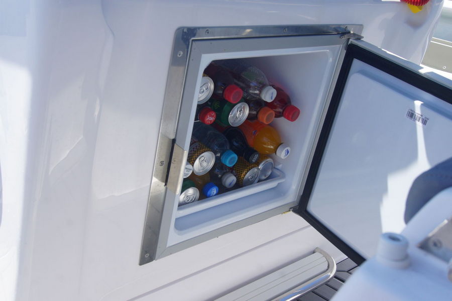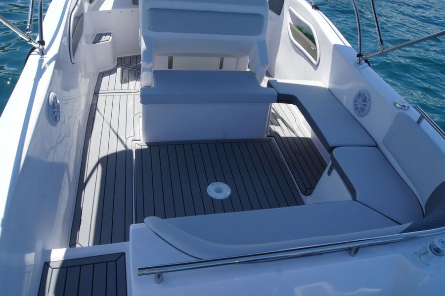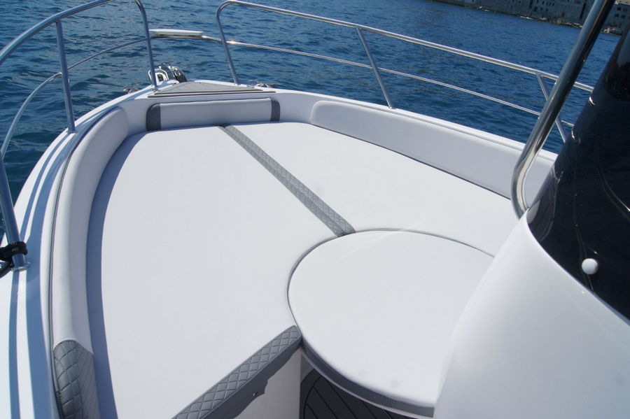 We offer a new speedboat brand AYROS XC open, which comes to us from a famous shipyard in Sicily. The features of the speedboat are a comfortable space, a large sundeck that can be converted into a booth with the possibility of setting up a table, which gives us excellent use of space, and the stern seat is foldable and converts into a bed. The boat is adorned with a large width (2.55m) and length (7m), which gives it excellent stability at sea, and the high sides protect it from sea spray. It has a 200hp Yamaha, which is more than enough for a boat that can carry 10 people.